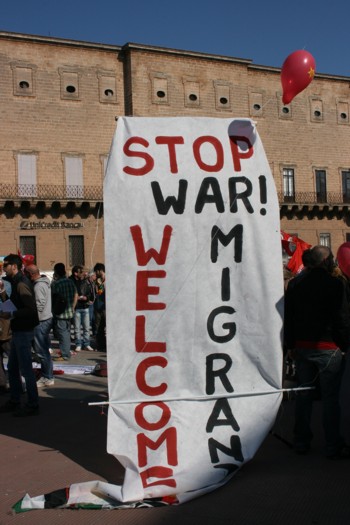 Queste parole di Amadin hanno riscaldato il cuore della gente delle tante associazioni che hanno aderito all’appello di Emergency: tante chiazze “rosse” in piazza Garibaldi, tutte con la finalità di gridare il proprio dissenso verso la guerra e far sentire la solidarietà ai tanti profughi tunisini ancora presenti nella tendopoli dell’ex aeroporto militare.