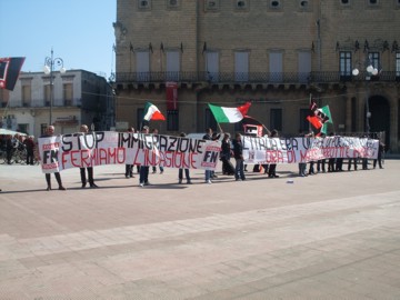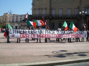 Manduria a partire per manifestare il suo dissenso sul fenomeno dell’Immigrazione e per esprimere il suo parere contrario alla presenza della tendopoli a Manduria.Quest’azione aprirà la serie di manifestazioni che Forza Nuova terrà in tutte le regioni Italiane a partire dalla prossima settimana.