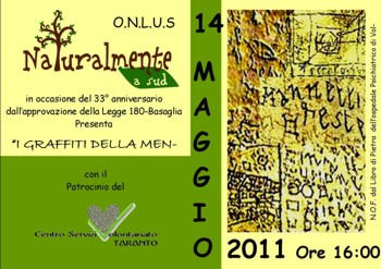 Con questa prospettiva l’Associazione Naturalmente a Sud di Manduria vuol promuovere un programma di iniziative per costruire opportunità d’informazione, di partecipazione al lavoro dei Servizi stessi, di crescita delle conoscenze tra i familiari e costruzione di programmi concreti di aiuto reciproco. Per questo vi invita ad una prima occasione d’incontro e di riflessione.