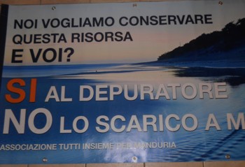 Evidentemente ai “vendoliani” questo striscione non è piaciuto, a tal punto da scatenare le ire di diversi esponenti locali del partito che chiamavano la Polizia per farlo rimuovere. L’intervento non ha avuto l’effetto sperato: la Polizia constatava infatti che lo striscione, così come si vede in foto, non contiene simboli politici e nemmeno messaggi offensivi, ma solo una domanda chiara e forte che tanti manduriani rivolgono al governo regionale: “NOI VOGLIAMO CONSERVARE QUESTA RISORSA E VOI?”