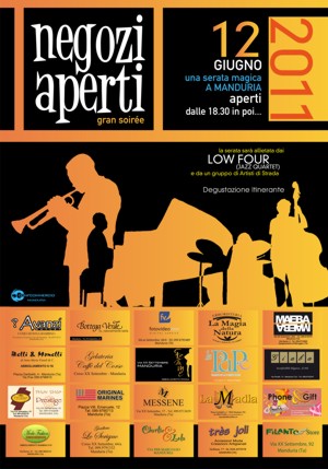 La serata sarà allietata dai “Low Four”, un quartetto di musica jazz e da un gruppo di Artisti di Strada.Ogni attività per la serata proporrà un trattamento vantaggioso per i clienti