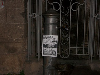 curata, di un manager, con tanto di camicia dal polsino inamidato e giacca blu. Questa l’immagine rappresentata sui volantini lasciati galleggiare nella fontana di piazza Vittorio Emanuele (villa comunale) a Manduria, come nelle fontane pubbliche di tutta Italia, per dire ‘no’ alle ‘’mani sporche’’ dei privati sull’acqua.