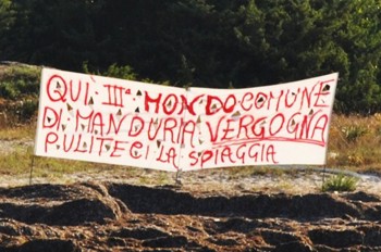 una volta , lo stato di degrado in cui versa la spiaggia del porto di Torre Colimena.