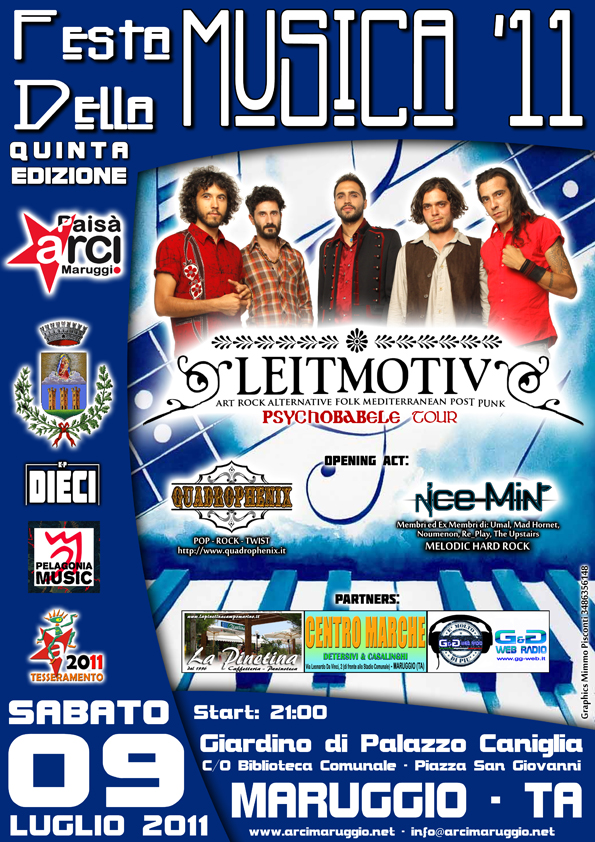 Un gruppo che racchiude al suo interno realtà apparentemente incompatibili, che si manifestano nelle diverse anime: la vocazione rock, esplosiva ed energica, la vena folk, che sancisce il vincolo con la terra natìa e l’inclinazione scenica e teatrale, capace di ammaliare ed estasiare il pubblico. I Leitmotiv vantano un curriculum di tutto rispetto, che li ha visti protagonisti delle più prestigiose manifestazioni artistiche d’Europa, tra cui la BJCEM – Biennale dei Giovani Artisti dell’Europa e del Mediterraneo, a Skopje (Macedonia), solo per citarne una.
