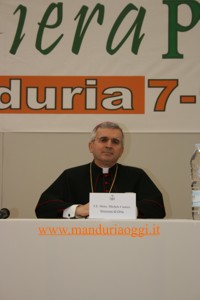 Dopo l’assessore Pacifico, è intervenuto il vescovo di Oria, mons. Michele Castoro, il quale, dopo aver ricordato la grave crisi economica mondiale in atto, ha indicato nella “freschezza e nell’entusiasmo” dei giovani le potenzialità da sviluppare per guardare con maggiore fiducia al futuro.«In questo grave periodo di crisi, è importante cercare e progettare un nuovo sviluppo è stato l’auspicio di mons. Castoro. «Ma occorre ritrovare fiducia nel futuro, nonostante le difficoltà e le incertezze. Un periodo che ancor di più acuisce i bisogni e le precarietà delle famiglie e dei giovani. Soprattutto in una terra, come la nostra, che convive con problemi di lunga data. Ecco perché è importante puntare sui giovani, che sono il volto e l’anima del nostro territorio. Giovani che, sinora, hanno pagato sempre il prezzo più alto, in quanto esclusi dal sistema produttivo. Loro devono essere le sentinelle della nostra rinascita per un futuro che deve basarsi su progetti sostenibili. Fiducia deve essere risposta anche nella capacità degli imprenditori, dei lavoratori e dei professionisti, affinché il futuro sia più rassicurante e meno nebuloso».