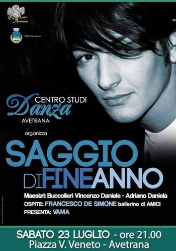 Danza Avetrana organizza il saggio di fine anno. Si esibiranno tutti gli allievi nelle varie discipline (Latino, Caraibiche, Moderno, Moderjazz, Classico, Contemporaneo, Hip Hop, Break Dance). La scuola è diretta dai maestri Buccolieri Vincenzo Daniele e Adriano Daniela, con la collaborazione degli istruttori Olga Cera, Marco Antonio Perrucci e Francesco Prisciano. Quindi, dopo 9 mesi di lezione, finalmente per i giovani ballerini avetranesi la possibilità di esibirsi nella piazza centrale del loro paese. Infatti il Centro Studi Danza, operante nel sociale da dieci anni, con le sue attività annuali riesce ad avere circa 70 giovani atleti impegnati nelle varie discipline e li aiuta a crescere in ambienti sani e lontano dalle strade.