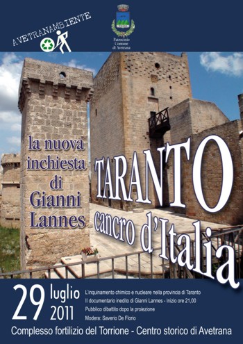 Gianni Lannes sulla presenza e continua diffusione di veleni ed inquinanti di ogni genere sul suolo e nei mari italiani, con gravi conseguenze per la salute pubblica e per l'ambiente.. Una vera e propria indagine ambientale a tutto tondo, presentata per la prima volta al pubblico ed introdotta dal documentario che aprirà la serata culturale del 29 luglio ad Avetrana.