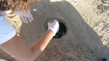 Micò, un’attivista del WWF di Policoro che si occupa di tartarughe e dei loro nidi.«Abbiamo notato che qualche bagnante, vedendo le uova di tartarughe che la mareggiata aveva portato in superficie, ha tentato di riposizionarle nel nido. Ma sia la mareggiata, che l’incauto bagnante hanno provocato dei danni: abbiamo verificato che solo il 30% delle uova si sono salvate. Insieme alla dott.ssa Micò, abbiamo tirato fuori tutte le uova, numerandole, e, poi, le abbiamo inserite, nello stesso ordine, in un nido che abbiamo realizzato a qualche metro di distanza, in una zona più al sicuro delle mareggiate».