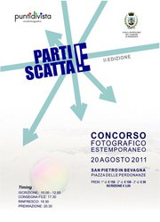 agosto 2011. Possono partecipare tutti gli appassionati di fotografia di ogni età con un massimo di tre fotografie digitali che dovranno essere scattate in formato JPEG il giorno stesso del concorso. I partecipanti devono essere gli autori delle foto; i file devono essere consegnati così come scattati, non sono ammesse modifiche di nessun genere. La data dello scatto si evincerà dalle specifiche del file e dal settaggio della fotocamera; le foto non scattate lo stesso giorno del concorso saranno escluse.Sono esclusi dalla partecipazione i soci di Puntidivista.