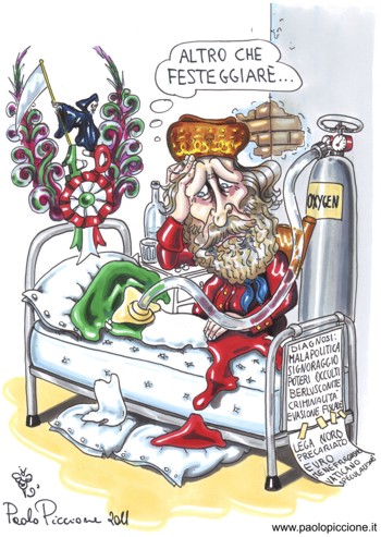 vignettista manduriano Paolo Piccione, presentando una vignetta che ritrae un Garibaldi al capezzale di un’Italia morente, per la terza volta in quattro anni vince uno dei 3 Marenghi d’Oro svizzeri messi in palio dalla 22ª edizione della rassegna nazionale di vignette satiriche “Ridere sotto il tasso”, promossa a Cavandone (in provincia di Verbania) dall’associazione “Arti Artigiane Verbano”. “1861-2011: 150 dall’unità d’Italia, fatti ed episodi della storia d’Italia visti attraverso la lente fantasiosa e divertente degli umoristi e dei vignettisti di oggi” era il tema scelto per quest’anno dagli organizzatori del concorso.