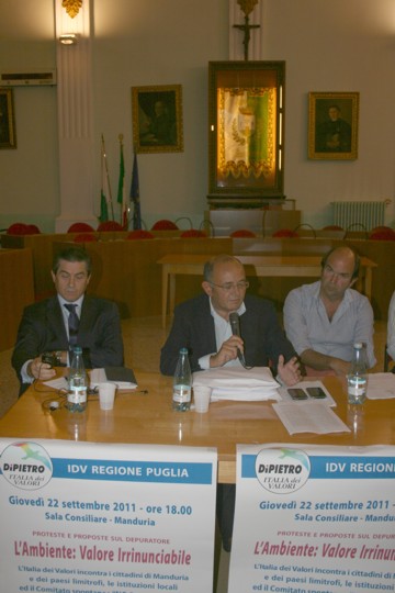 Questi impegni, ieri, Manduria ha chiesto ai due autorevoli esponenti dell’Italia dei Valori. Ricevendo, in cambio, l’impegno dell’on. Di Stanislao a chiedere, sin da oggi, un incontro al governatore Vendola, al fine di farsi portavoce delle istanze della popolazione del versante orientale della provincia di Taranto.«L’ambiente è un valore irrinunciabile» ha affermato l’on. Di Stanislao. «Non è un valore che si può negoziare. Mi impegno, stasera, a sposare la vostra battaglia, facendoci carico, come partito e come assessorato, delle vostre istanze».
