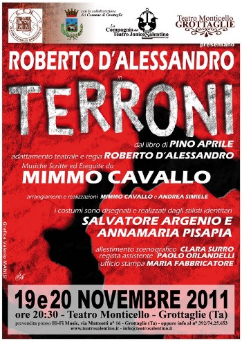 Valerio Manisi, in collaborazione col Teatro Monticello di Grottaglie, organizza la stagione Teatrale 2011/12 con la scelta di alcuni degli spettacoli più in rilievo nel panorama nazionale teatrale.S’inizia con “Terroni”, lo spettacolo che nel 150° anno dell’Unità d’Italia porta alla luce la realtà e le verità mai raccontate sulla nascita dell’“Italia”.