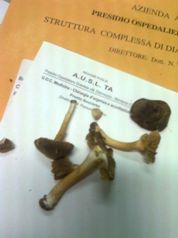Micologico del Dipartimento di Prevenzione della A.s.l. di Taranto (diretto da Armando Durante), venerdì scorso sono stati chiamati in pronta disponibilità presso il pronto soccorso del nosocomio cittadino per una sospetta intossicazione da funghi epigei spontanei.