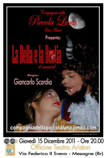 Pan, il musical” torna la compagnia della Piccola Luna, giovane e di grande talento, con la messa in scena de “La bella e la bestia, il musical”, tratto dalla nota favola disneyana, musiche di Alan Menkel, regia di Giancarlo Scardia.