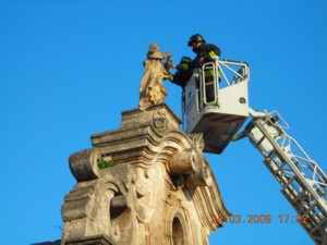 Il 24 Marzo u.s. su disposizione del Comando Provinciale giungeva sul posto una squadra dei Vigili del Fuoco di Manduria, la quale, successivamente a perizia, e dopo aver prelevato dall’alto del frontale della chiesa un consistente pezzo di timpano in tufo che rischiava di cadere (ciò è stato verbalizzato) e averlo consegnato all’Architetto che per conto della chiesa dovrà reinserirlo al momento del restauro e consolidamento, il Comandante disponeva che la parte sottostante la statua dell’Immacolata venisse transennata e che la statua dell’Immacolata, posta in sicurezza “anellandola” al fine di evitarne una eventuale caduta (l’altezza del piano calpestio della statua è di circa 25 metri). Veniva disposto inoltre la collocazione di “vetrini” sulle lesioni delle mura interne alla chiesa per monitorarne le eventuali dilatazioni.