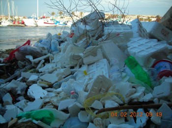 (bottiglie di plastica, cassette in polistirolo, legno, vetro), che sono ammassati nell’insenatura. Non mancano le alghe in putrefazione, che sprigionano un cattivo odore.