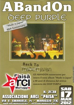 band dei Deep Purple. In occasione del 40simo anniversario dall'uscita di “Made in Japan”, la band suonerà per intero quell’album...Impossibile mancare quindi, per chi li ha già visti all’opera... gente esperta, con una certa padronanza dello strumento... e amore per la musica, amore pe ril rock settantiano, amore per i DEEP PURPLE!!!