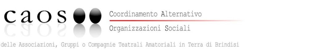 Le compagnie teatrali consorziate in CAOS si alterneranno sui palcoscenici della Provincia a cominciare da domenica 15 aprile, nel Teatro Comunale di Mesagne, per concludersi domenica 3 giugno a Cellino San Marco con offerte rappresentative diverse: dal comico al drammatico, dalla prosa alla commedia e con evoluzioni linguistiche diverse -dialetto e italiano- ma fortemente connaturate nell’ambito della tradizione e dell’arte scenica.