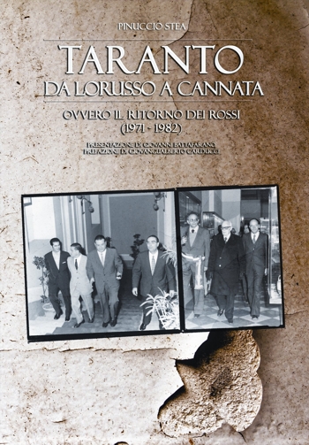 Mondadori, in via De Cesare 35 a Taranto, sarà presentato il libro, edito da Scorpione Editrice “Taranto da Lorusso a Cannata - Ovvero il ritorno dei rossi (1971 - 1982)” di Pinuccio STEA.Con l’autore ne discuteranno il prof. Domenico Amalfitano, già sottosegretario di Stato, il prof. Claudio Signorile, già Ministro della Repubblica, il prof. Giuseppe Vacca, presidente nazionale della Fondazione “Istituto Gramsci”.