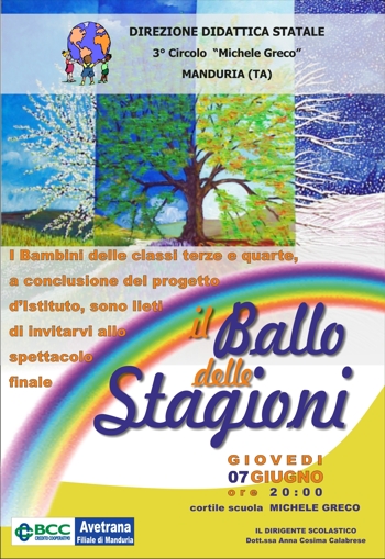 Greco, giovedì 7 giugno alle ore 20, nel giardino della scuola, presenteranno la conclusione del progetto “Il ballo delle stagioni”.