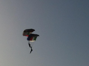 Scuola di Paracadutismo di Fermo, noti, per essere gli unici a praticare una particolare tecnica di volo umano in caduta libera. Gli Atmonauti hanno disegnato con i fumogeni durante la discesa in caduta libera la bandiera italiana, sembravano aerei ma erano gli Atmonauti.L’evento ha visto anche la partecipazione della squadra di paracadutismo dei Carabinieri. Poi, un’entusiasmante discesa da parte dei paracadutisti con la tecnica del