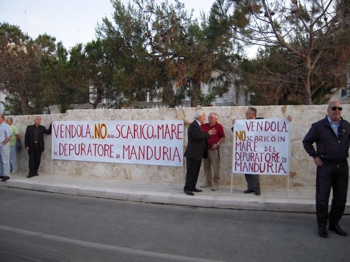 «Abbiamo esposto di fronte all’ingresso del museo di uno striscione di quattro metri e di un cartellone entrambi recanti la scritta: “Vendola, no allo scarico in mare del depuratore di Manduria”» racconta il presidente di Archeoclub, Sergio De Cillis. «Abbiamo inizialmente registrato un allarme, a nostro avviso ingiustificato, degli organizzatori della cerimonia di inaugurazione del museo. Nello stesso tempo vi è stata una grande curiosità da parte dei cittadini, che hanno chiesto notizie dettagliate sui motivi della protesta, che hanno solidarizzato con noi e che ci hanno incoraggiati: questo per noi è stato motivo di grandissima soddisfazione e la prova di un sentimento diffuso contro i depuratori che scaricano nel mare. Polignano, d’altronde, ha un depuratore con lo scarico in mare!».