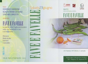 La presentazione del libro “Fave e favelle” degli autori Domenico Nardone, Nunzia Maria Ditonno e Santina Lamusta avrà luogo sabato 23 giugno, alle ore 19, presso il Museo della Civiltà del Vino Primitivo in Manduria.