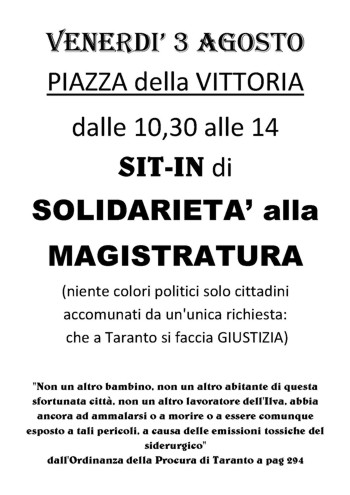L’invito è rivolto ai cittadini, alle associazioni tutte, agli operai, ai mitilicoltori, agli allevatori... “UNITI senza colori e senza bandiere...un segnale di PRESENZA e di FIDUCIA!”