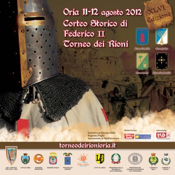 manifestazione, è al lavoro da tempo per preparare ogni cosa e far rivivere ai turisti che scelgono la Puglia per le loro vacanze una delle più importanti pagine di storia di questa terra antica dove molto ruota intorno alla figura dell’imperatore svevo che nel 1225 fede edificare proprio ad Oria uno dei suoi tanti castelli. Proprio intorno al maniero fridericiano è nato il “Torneamento” tra i quattro rioni della città: Castello, Judea, Lama e Santo Basilio.