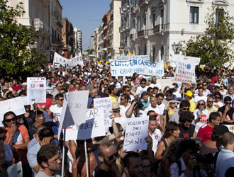 Alcune centinaia di cittadini sono scesi in piazza a Taranto. La zona attorno al palazzo del Governo è stata transennata e chiusa anche ai pedoni dopo che il questore ha vietato ieri ogni corteo e manifestazioni davanti e nei pressi della Prefettura