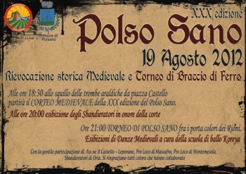 Pulsano intende proporre una nuova edizione della storica manifestazione pubblica in costume medievale di grande impatto. E’ rivolta alla promozione del territorio attraverso uno spettacolo che richiama ogni anno numerosi cittadini del luogo e dei paesi limitrofi, turisti che gravitano le zone costiere e operatori turistici.Con lo straordinario successo riscosso dalle numerosissime edizioni del polso sano svoltesi nel corso degli anni, la Pro Loco di Pulsano è pronta ha riaffermare e rilanciare il suo territorio con manifestazioni capaci di soddisfare tutti i tipi di pubblico. Quest’anno, desiderosi di bissare e migliorare gli ottimi risultati finora raggiunti, ci affacciamo alla stagione estiva con un programma ancora più ricco ed accattivante, che vede il ritorno di un appuntamento immancabile: Polso Sano. Grazie all’insostituibile apporto delle diverse associazioni presenti sul territorio, vero cuore pulsante della Città, ci auguriamo di lanciare un entusiasmante stagione di manifestazioni estive, che, ne siamo certi, vi farà innamorare di Pulsano.