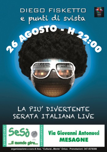 Punti di Svista in concerto. Divertentismo italiano con i più “pazzi” sulla piazza.La band salta fuori da un istintivo spunto di follia del musicista Diego Fischetto, eclettico pianista e cantante, che sommando l’energia ritmica di Francesco Castrignano alla batteria el'immancabile, instancabile Big Iaia al basso, presenta uno spettacolo di assoluto ed imperdibile divertimento...