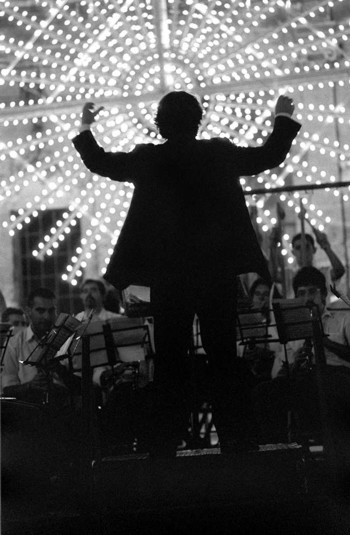 Le immagini fermate nel tempo da Ciro Quaranta, fotografo grottagliese, ci racconteranno i momenti della festa che si svolge con lo stesso entusiasmo in qualsiasi città, paese, quartiere o chiesetta di campagna per chi è stato eletto a sua protezione. Corposa la sezione dedicata alle Bande da giro, oggi musicisti professionisti ma un tempo artigiani, contadini o commercianti istruiti dai maestri di cappella che portano in giro per i paesi dell’Italia e all’estero un pezzo della tradizione di Puglia. Doveroso l’omaggio ai “nomadi del pentagramma” così definiti da Bianca Tragni, prima storica delle Bande da giro in Puglia, autentica colonna sonora di ogni manifestazione religiosa e civile del Meridione d’Italia.