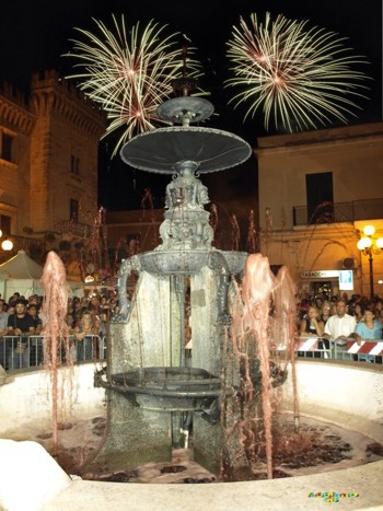 p.zza V.Emanuele III, si è inaugurata l’edizione 2012 della Sagra del Vino di Carosino. Com’è oramai tradizione consolidata, pure per questo evento numero 46, l’apertura è stata affidata alla spettacolare “accensione” della fontana monumentale dai cui beccucci, per l’irrefrenabile gioia del pubblico, zampillerà vino.