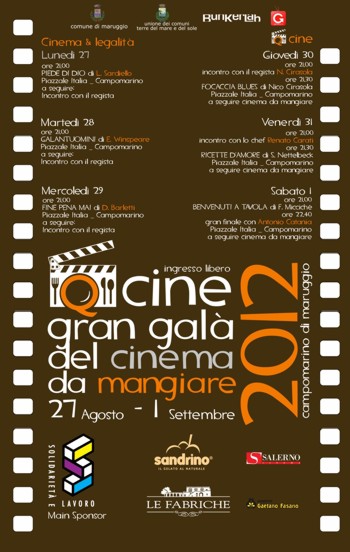 La parte “clou” del galà avrà inizio il giovedì e si articolerà in tre serate dedicate a pietanze e ricette made in Italy: giovedì 30 agosto avrà luogo la proiezione del film Focaccia Blues e l’incontro con il regista del film, Nico Cirasola; venerdì 31 agosto sarà la volta della proiezione del film Ricette d’amore e la consegna del premio “Qcine nel mondo” allo chef internazionale Renato Carati; sabato 1 settembre, gran finale del Galà con la proiezione di due puntate del serial televisivo Benvenuti a tavola e con l’incontro con l’attore Antonio Catania.