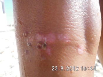 frazione di Torre Ovo della marina di Torricella. Sono state contratte sia da bambini che da adulti che villeggiano in questa località e interessano, in particolare, interessano gli arti (braccia e gambe, come si nota dalla foto), ma anche il viso e, in alcuni casi, anche le parti intime. A causa di queste forme di impetigine, alcuni villeggianti hanno preferito ricorrere alle cure sanitarie del Pronto Soccorso dell’ospedale di Manduria.