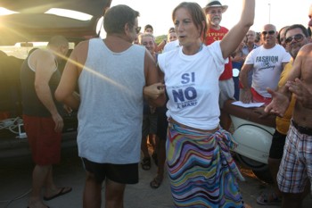 Specchiarica, a poche centinaia di metri della salina dei Monaci, una delle aree della Riserva Naturale del Litorale Orientale della provincia di Taranto. In questo tratto, la Regione Puglia ha un lato ha finanziato il ripascimento delle dune, dall’altro, nello stesso punto, ha previsto il passaggio delle condotte attraverso le quali saranno scaricati in mare i reflui. Condotte che dovranno passare sotto una delle dune recuperate grazie proprio ai finanziamenti regionali…La protesta è stata alimentata, negli ultimi giorni, dalle polemiche a distanza fra Romina Power (che, con una lettera accorata inviata a Vendola, ha chiesto il rispetto di questo tratto di costa) e il suo ex marito Al Bano, da una parte, e l’assessore ai Lavori Pubblici, Fabiano Amati (che non intende sentire ragioni sulla soluzione scelta dalla Regione Puglia per il conferimento finale dei reflui), dall’altra. Con sottofondo le note del “Ballo del qua qua” di Romina Power e di Al Bano, centinaia di villeggianti e di cittadini di Manduria e Avetrana sono a ritornati a chiedere una ubicazione diversa del depuratore e,