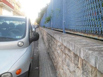 utilizzabile per circa 10 cm. In questa situazione tutte le mamme con le carrozzine, gli handicappati in carrozzella e i semplici pedoni sono costretti a camminare sul tratto lasciato libero per il transito delle auto e con queste competere quando passare».