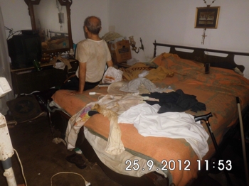 «Nella sua abitazione regna il più assoluto degrado igienico-sanitario» scrive Carrieri, allegando all’esposto anche alcune significative fotografie. «La sua casa è in totale stato di abbandono, trasformata in un vero e proprio accampamento. L’aria è irrespirabile a causa anche dei resti di alimenti sparsi sul pavimento e dei panni e degli oggetti impregnati di sporco ovunque. E’ trascuratissimo, con manie di persecuzioni, con difficoltà a deambulare, dotato di lenti spessissime che gli permettono bene o male di potersi muovere».