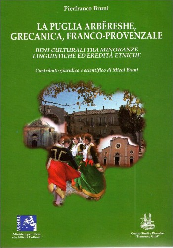 in via Vittorio Veneto 27, alle ore 19,la ricerca dal titolo: “La Puglia Arbereshe, Greganica, Franco-Provenzale. Beni culturali tra minoranze linguistiche ed eredità etniche” (Ministero per i beni e le Attività Culturali), di Pierfranco Bruni, con saggio introduttivo del direttore generale Maurizio Fallace.