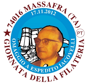 della Filatelia sul tema “Personaggi, fatti, attualità”. L’edizione di quest’anno è in omaggio allo studioso, ricercatore, cultore del dialetto e delle tradizioni popolari Espedito Iacovelli nel trentennale della sua scomparsa (nato nel 1909 è morto nel 1982). La manifestazione è organizzata dal Circolo Filatelico “A. Rospo”, associato alla Federazione fra le Società Filateliche Italiane ed iscritto alla Consulta delle Associazioni di Massafra. Patrocinio del Comune di Massafra e dalla Consulta delle Associazioni. Collaborazione della Federazione fra le Società Filateliche Italiane (F.S.F.I.) e delle Poste Italiane.delle associazioni massafresi Archeogruppo “Espedito Jacovelli”, “Segmenti d’Arte”, “Agorà”, “Antonio Dellisanti Editore”, F.S.F.I. (Federazione fra le Società Filateliche Italiane) e Poste Italiane.