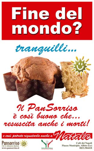 Infine, ma non meno importante, Andrea, Giorgio, Mattia e Michael hanno assunto l’impegno di curare il marketing di un nuovo prodotto dolciario nato sei mesi fa, concepito appositamente per la Dieta Med-Italiana, il “PanSorriso”, un dolce particolarissimo creato dal pasticciere Giovanni Venneri che, grazie all’uso di prodotti naturali del Salento come olio extravergine d’oliva Adamo e miele, che sostituiscono rispettivamente burro e zucchero, risulta essere al tempo stesso buono, naturale, digeribile e, soprattutto, sano, caratteristiche queste molto rare in un prodotto dolciario, come ben sanno tutti i golosi. L’artigiano di Alliste, creatore del PanSorriso, ha deciso di affidare alla creatività e all’intraprendenza degli studenti leccesi il delicato compito di far conoscere, apprezzare e, quindi, acquistare la sua nuova creatura. Ad oggi i ragazzi ne hanno concepito il nome, il logo e la forma e hanno già avviato diverse iniziative promozionali, attraverso sia il web ed i social network che i mezzi più tradizionali.