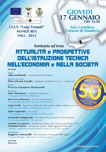 taglia il traguardo del cinquantesimo anniversario dalla sua fondazione. Mezzo secolo nel corso del quale ha formato numerose generazioni di giovani del versante orientale della provincia e di alcuni centri limitrofi del brindisino.Per celebrare questa ricorrenza, da domani (giovedì), si apriranno, con un convegno, le celebrazioni che proseguiranno per tutto l’anno scolastico.