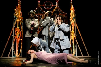 Un allestimento ricco di ingredienti interessanti. Intanto, la traduzione e l’adattamento originali di Francesco Niccolini - autore dei testi di Marco Paolini e di molte Compagnie italiane - che nutre un grande amore per Shakespeare e che ha composto un testo in rima (come nell’originale scespiriano) pieno di ritmo e di sorprese.