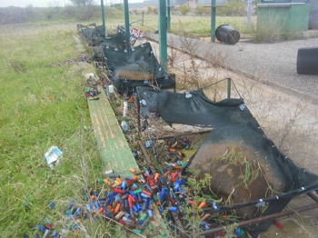 «L’intera struttura, provvista di gradinata e fari di illuminazione notturna, versa nella più assoluta decadenza e le tantissime macchine che lanciavano i piattelli, esposte alle intemperie e sprovviste di manutenzione, difficilmente potranno essere recuperate» sostiene l’ambientalista. «Il disinteresse dimostrato dagli amministratori nella gestione della “cosa pubblica” non fa che confermare, per l’ennesima volta, la superficialità con la quale viene utilizzato il denaro pubblico! Il degrado ambientale all’interno dell’area, che si estende per circa quattro ettari (il cui libero accesso è anche causa di atti vandalici), è palpabile, e non solo per la presenza di erbacce infestanti, ma anche a causa di un consistente quantitativo di tronchi di alberi di palma colpite dal “punteruolo rosso”, di pezzi di piattelli (forse in argilla), pallini di piombo, borre e cumuli di bossoli in plastica e ottone (in parte dati al fuoco) sparsi in quantità rilevante sul terreno prospiciente le quattro postazioni di tiro».Coinvolti da Carrieri, gli agenti del Corpo Forestale dello Stato di Manduria, sempre sensibili alle tematiche ambientali, sono immediatamente intervenuti sul posto per effettuare un sopralluogo e i rilievi di legge.