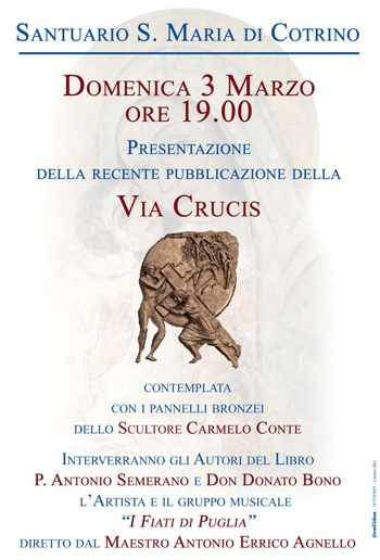 ore 18:30 presso il Santuario S. Maria di Cotrino in Latiano, la pubblicazione “Via Crucis”, curata da Padre Antonio Semerano e Don Donato Bono e pubblicata da Arti Grafiche Favia (Modugno).