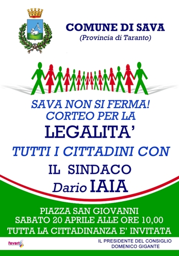 attraverserà il centro cittadino, il “corteo per la legalità”, organizzato dal Comune di Sava.