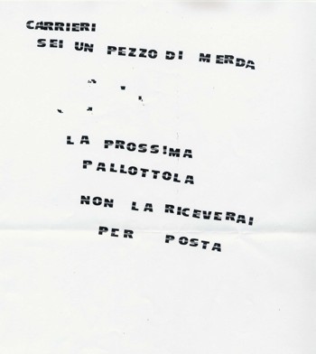 ingiuriosa e una minaccia esplicita: «La prossima pallottola non la riceverai per posta”.