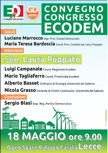 18 maggio - ore 9 - Lecce: Congresso Ecodem