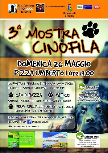 Umberto I ad Erchie la "3ª Mostra Cinofila Ercolana".Organizzata dalla Pro Loco di Erchie e dall’associazione Rock'n'Roll Party Erchie, in collaborazione con Amazon Basin del dott. Gallus Davide e con il patrocinio della Città di Erchie ed il contributo del Credito Cooperativo Cassa Rurale ed Artigiana di Erchie.